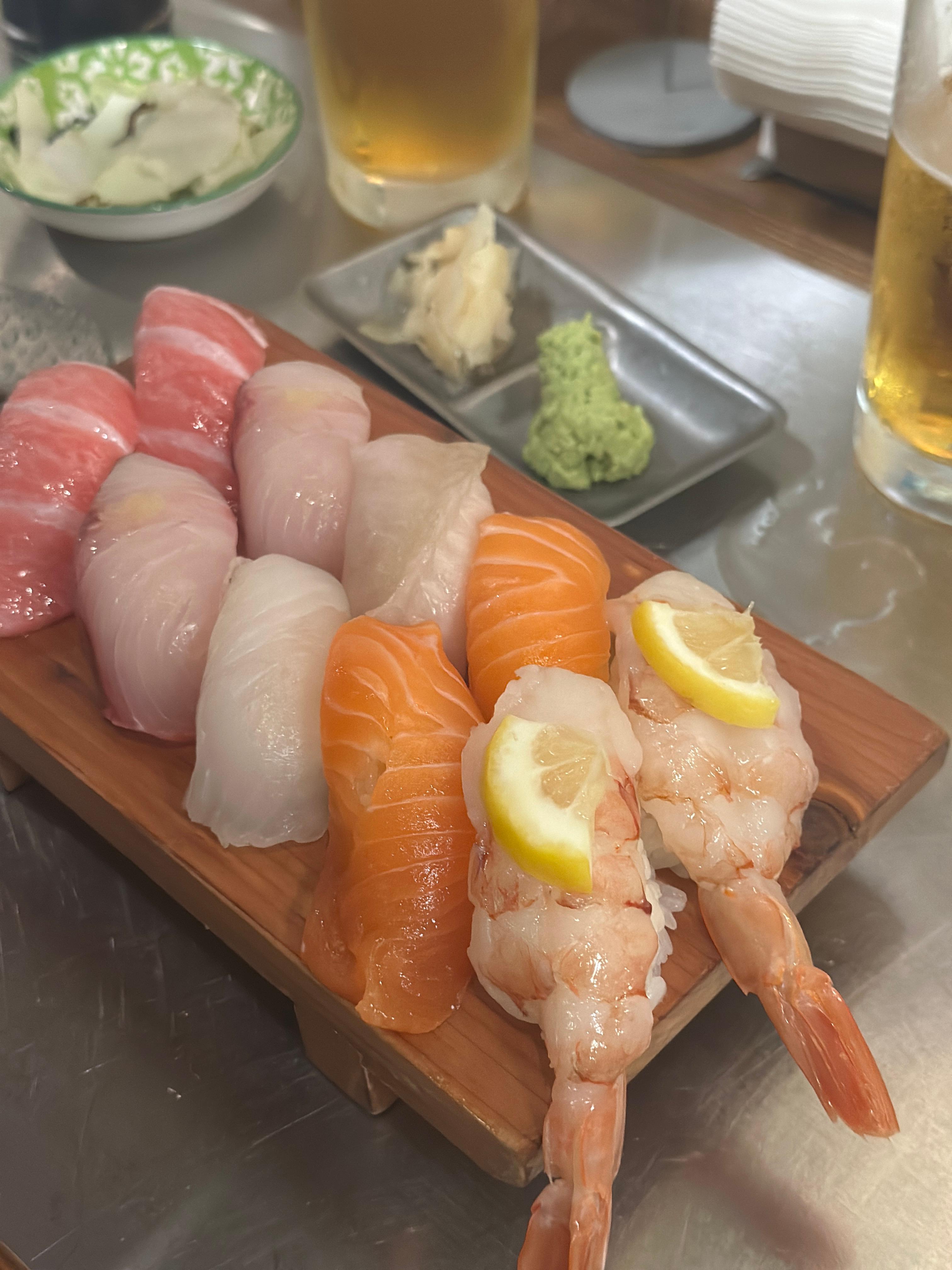 - 모둠 스시 🍣 : 참치, 연어, 광어, 새우 등 다양한 초밥이 푸짐하게 나왔어요. 재료 신선도도 좋아 만족스러웠습니다.