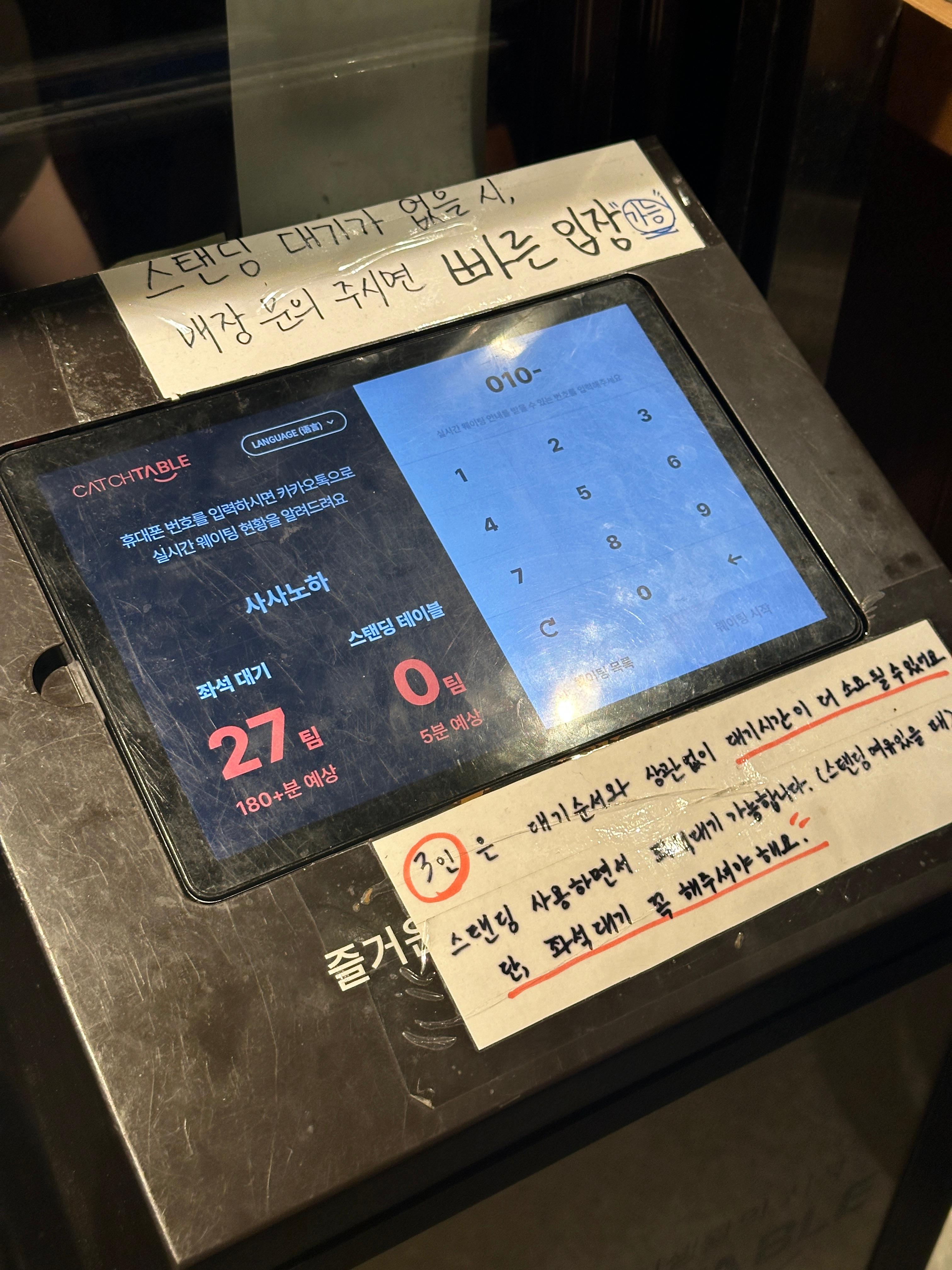 사사노하가면 웨이팅부터 확인해야할 것 같아요 평일 저녁인데 좌석대기 27팀 무슨일인지(?)